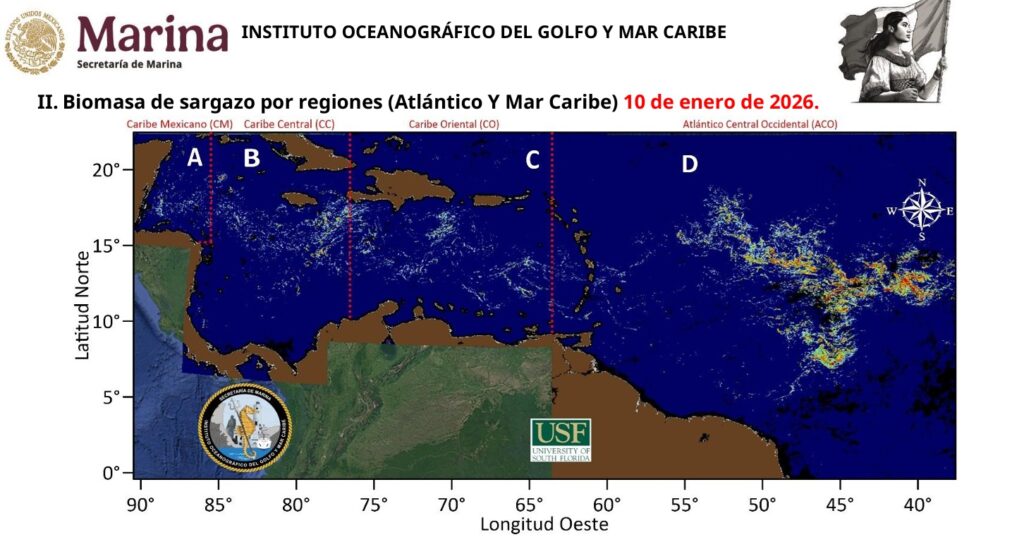 La cantidad de sargazo acumulada en aguas del Mar Caribe se triplicó en las últimas cuatro semanas. Del 12 de diciembre al 11 de enero pasó de 10 mil 793 toneladas a 37 mil 553 toneladas detectadas.