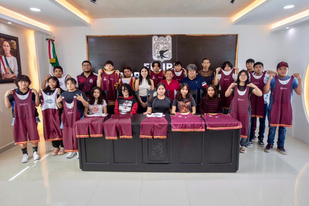 Atletas locales de la disciplina de halterofilia y voleibol playero, recibieron de manos de autoridades municipales, sus uniformes que portarán en la fase estatal de las olimpiadas nacional CONADE 2026, en un evento protocolario llevado a cabo la mañana de este jueves en la sala de cabildos del palacio municipal, como parte del respaldo a los atletas de Felipe Carrillo Puerto.