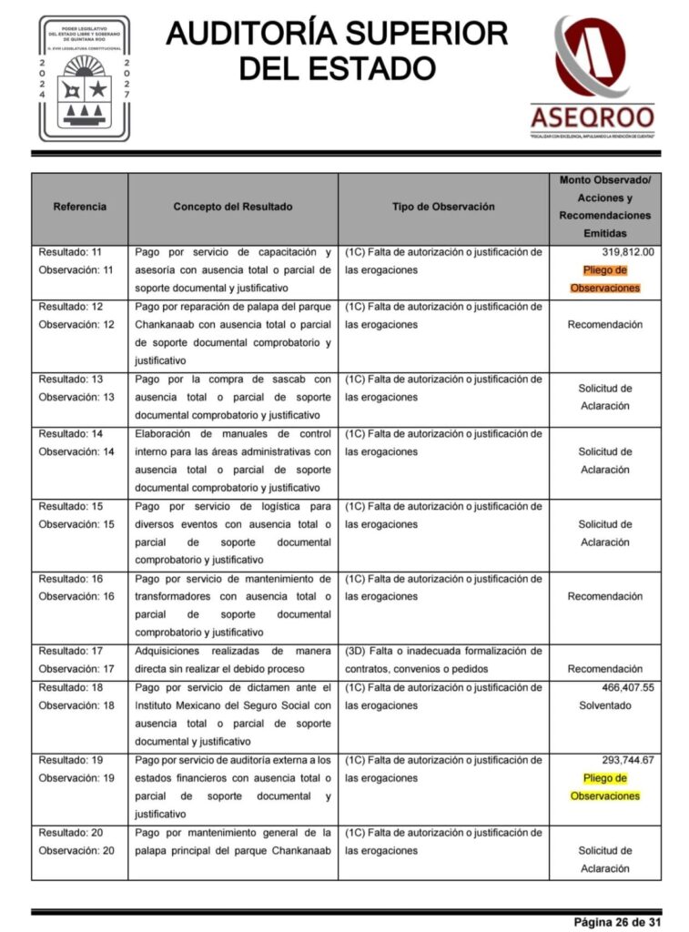 Desde febrero pasado, la Auditoría Superior del Estado notificó a José Luis Chacón, entonces director de la Fundación de Parques y Museos de Cozumel, los resultados de la auditoría pública 2023.