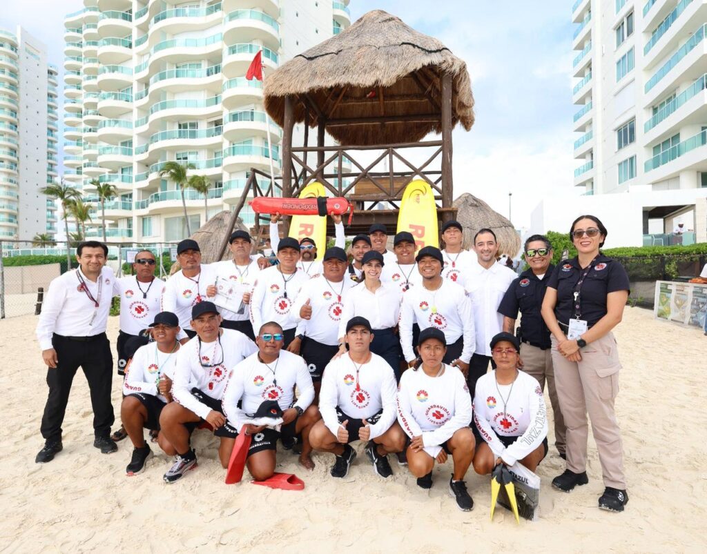 “Estoy con nuestro gran equipo de Guardavidas de Cancún, hombres y mujeres que entregan todo, en el rayo del sol y en la lluvia, siempre cuidando y protegiendo a los millones de visitantes. Hoy venimos a hacer la entrega del equipo de protección personal que son los uniformes, todo el equipamiento a este gran, gran equipo de guardavidas de los cuales nos sentimos sumamente orgullosos”, aseguró.
