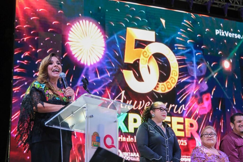 Mara Lezama recordó que la primera edición de la EXPOFER se realizó en 1975, apenas un año después de que Quintana Roo se convirtió en Estado Libre y Soberano, “y seguimos disfrutando aquí con ustedes, con mucho cariño”.