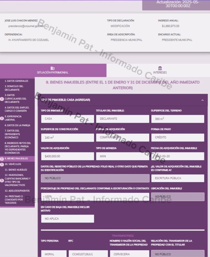 El alcalde de Cozumel no solo está en la mira de la Auditoría Superior de Quintana Roo por no aclarar el destino de 2.3 millones de pesos durante su paso por la Fundación de Parques y Museos, sino que también ha falseado sus declaraciones patrimoniales.